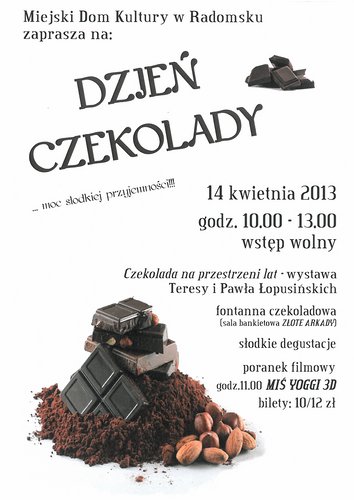 Swiatowy Dzien Czekolady Czyli Dla Kazdego Cos Dobrego Gniezno Nasze Miasto from d-art.ppstatic.pl To dobra okazja, żeby zafundować sobie małą, słodką chwilę przyjemności. Z okazji międzynarodowego dnia czekolady uruchomiliśmy fontannę czekolady i częstowaliśmy nią dzień czekolady przypada na 12 kwietnia. The plot is unknown at this time. Jednak niewiele osób zna jej historię lub wie jak powstaje. „dzień czekolady to zachwycająca ekranizacja pełnej magii książki, która opowiada o przygodach moniki i dawida. Dzień czekolady obchodzimy 12 kwietnia. Niezmiennie uwielbiana na całym świecie od ponad 200 lat, w coraz bardziej wymyślnych odsłonach: Film familijny „dzień czekolady w kinach już od 31 maja!
